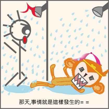1. 猴子跟烏骨在各自的浴室裡洗澡